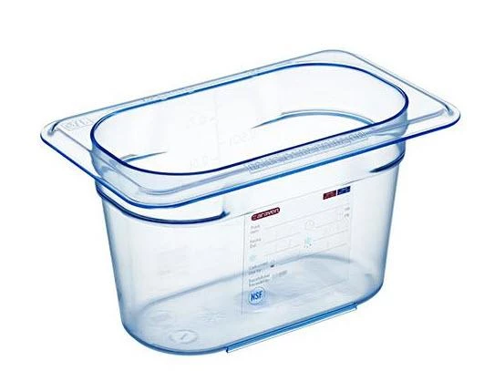 The GN 1/9Â h 100mm – 4″ 0,9l./ 0,74 qt without lid –Â airtight containers BPA Free are conceived and designed for catering professionals. The GastroNorm size containers have integrated traceability labels, they help comply with the health and hygiene regulation, they are totally transparent to quickly identify the food they contain. Their bi-injection moulded lid with rubber seal ensures maximum protection of foodstuff even in large containers.Â