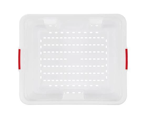 GN 2/1 h.380 mm./15″™ÿ90 L./23 Gal. Perforated Food Box is™ÿengineered to defrost faster.™ÿIt allows liquid that comes out of food Æ’?? meet and fish specially- its way to the bottom through the wholes, avoiding its accumulation on the contact zone.™ÿFood will be placed inside the perforated container nested into the other food box, that will keep the liquid that comes out of food,™ÿ avoiding leaking and contamination of other food. Lower food fox will keep the liquid that comes out of food avoiding contact with food. Food should be covered with a lid to avoid contaminations.