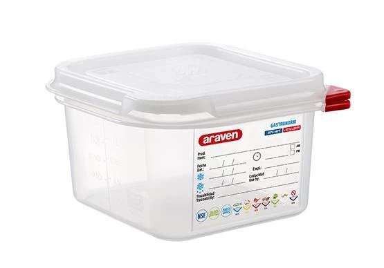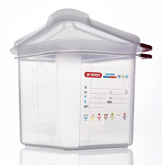 Araven’s new GastroNorm airtight containers also include new colorclips to help manage food and they feature improvements to the IML traceability label.