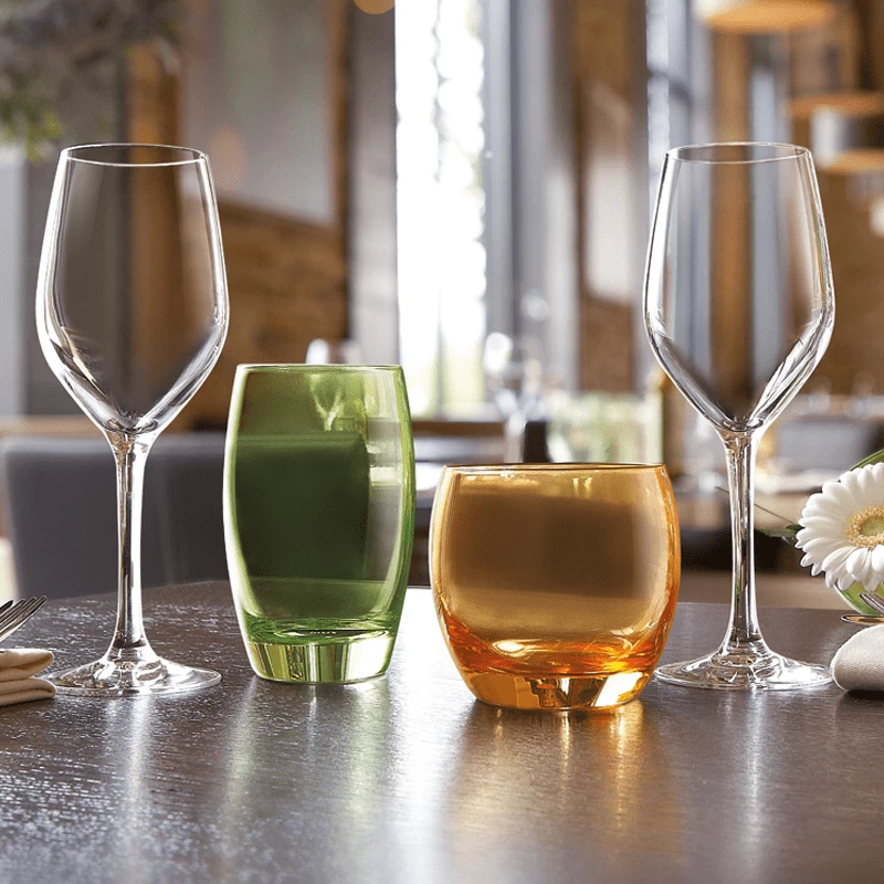 A range of tumblers that bring vivid colour to the bar and table. You can use a single colour or mix and match to add interest and an element of chic to the table.