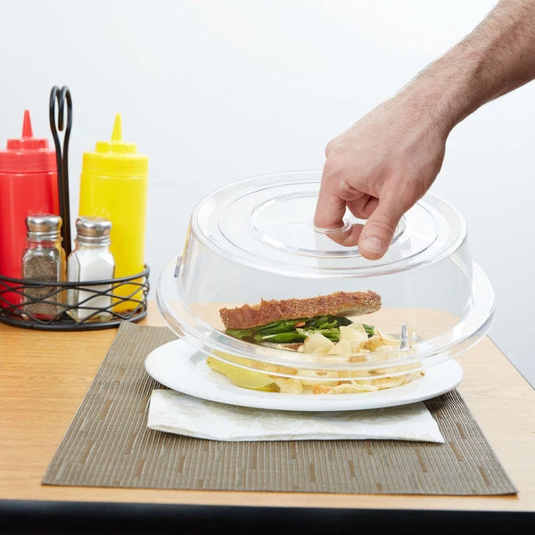 The Cambro 1007CW152 Camwear® Camcover® plate cover is designed to help maintain hot and cold temperatures of food products. When the cover is in place, it keeps contaminants out, but staff can still see the food through the clear material. It can be used in heated carts as hot as 210 degrees Fahrenheit. This Cambro 1007CW152 Camwear Camcover plate cover can be cleaned in a commercial dishwasher.
