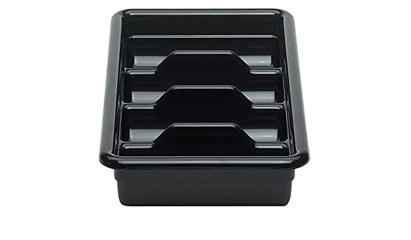The Cambro Cutlery Box has four compartments to sort your cutlery. Perfect for bussing or storage, the box is made of durable polyethylene. The Cambro 1120CBP110 is easy to clean and dishwasher safe.