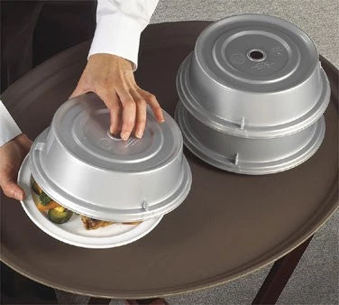 Provide impeccable in room meal service at hotels, hospitals, banquet halls, or assisted living communities without the frustrations of traditional plate covers with this silver metallic Cambro Camwear 1101CW486 Camcover 11″ plate cover. Made of polycarbonate plastic, the Cambro 1101CW486 Camcover 11″ plate cover keeps your heated foods protected and at food safe holding temperatures longer than comparable metal plate covers.