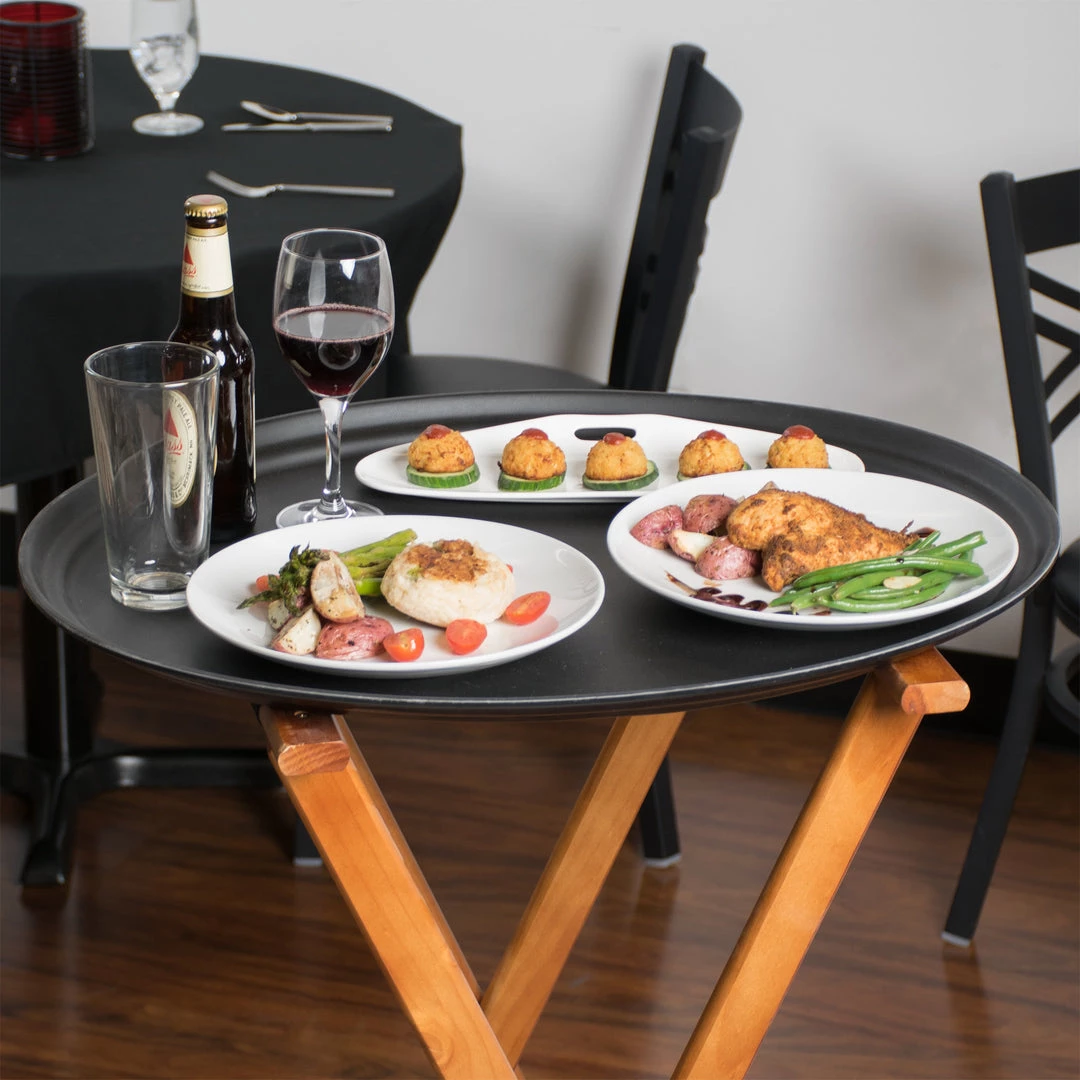 Bring unmatched elegance and durability to your banquets or fine catering experience with Camtread oval trays! Durable, long lasting fiberglass construction ensures easy maintenance and a professional look even after years of fast paced tray service. The thick non-skid rubber surface does not wear away under commercial dishwashing, keeping dinnerware in place and providing safer handling. The oval shape of this Camtread solution is recommended for caterers, hotel room service, and banquets handling heavy dishes. Ensure your drinks and meals are securely delivered, time and time again!