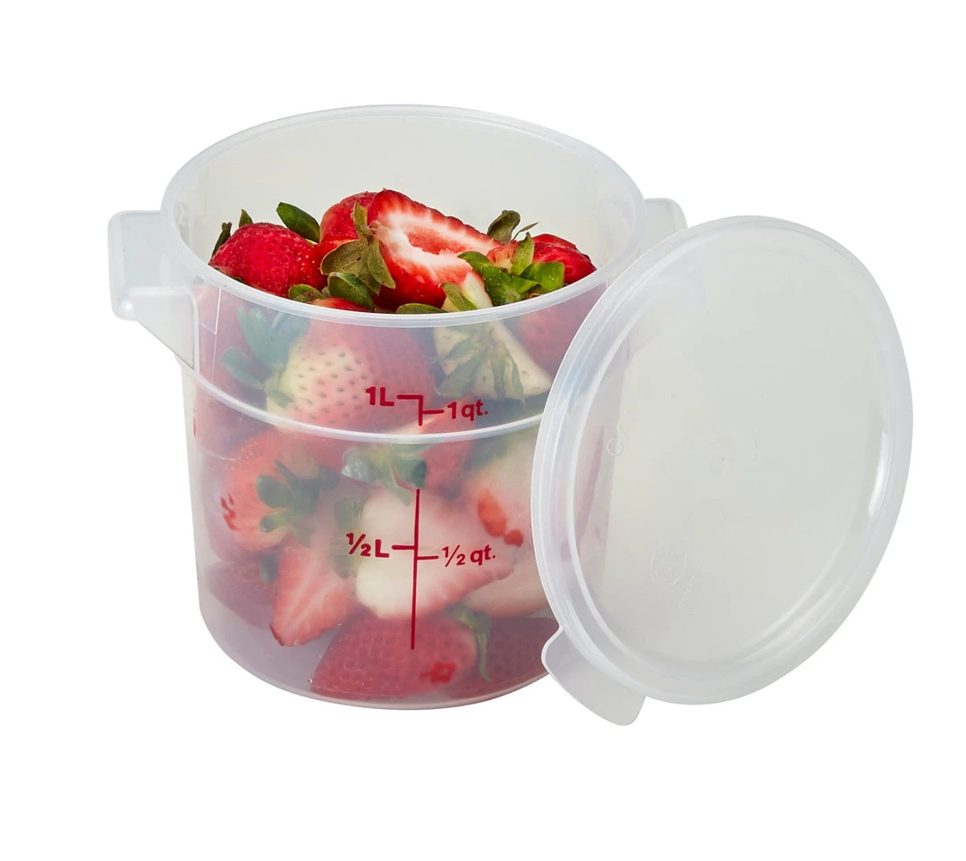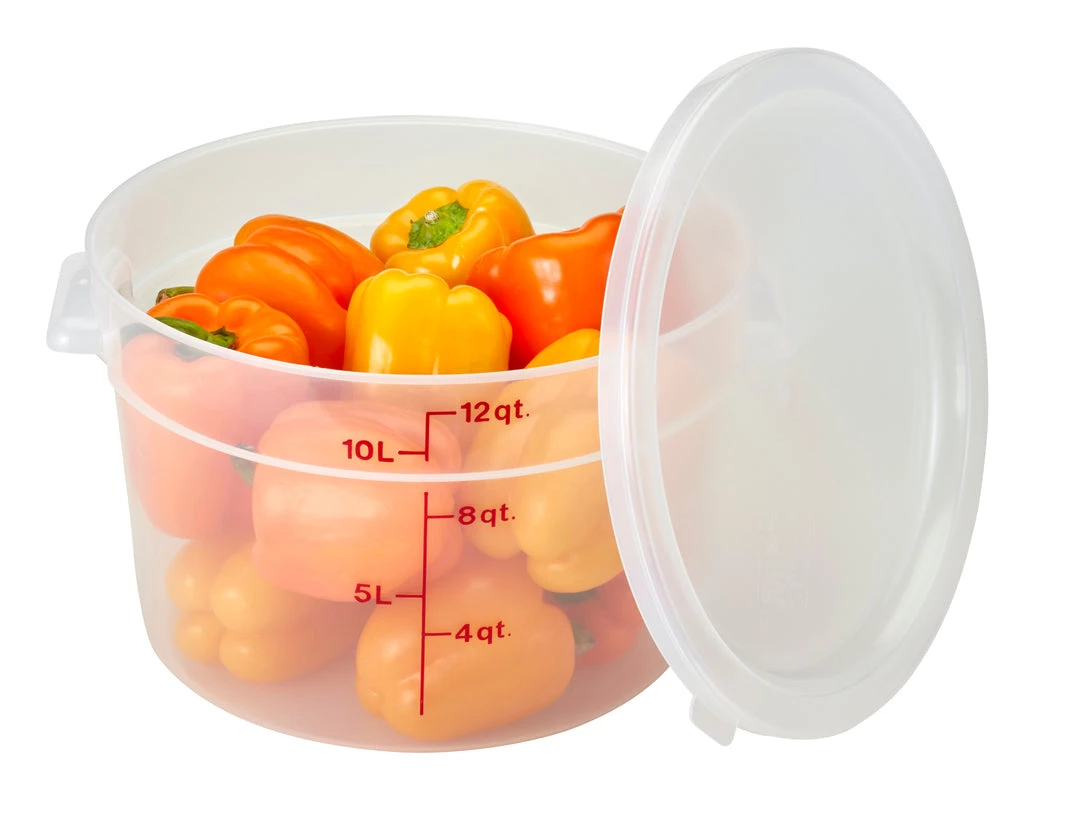 - Molded in handles on 12, 18, and 22 QTs offer ergonomic lifting