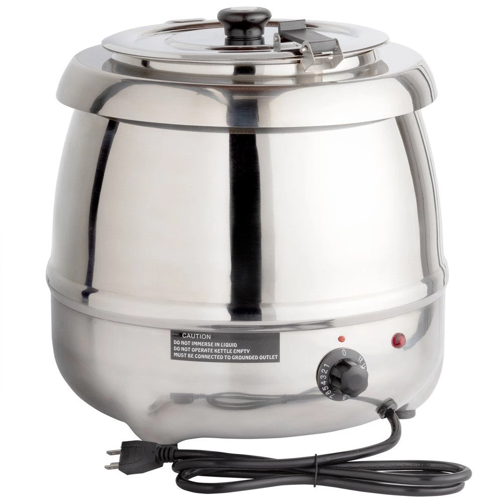 The electric soup kettle is ideal soup warmer for keeping delicious stews and soups a safe, servable temperature. With a black powder coated steel body, this soup kettle has an old fashioned aesthetic. The soup kettle comes equipped with a stainless steel insert and flip lid for sanitation and food safety purposes.