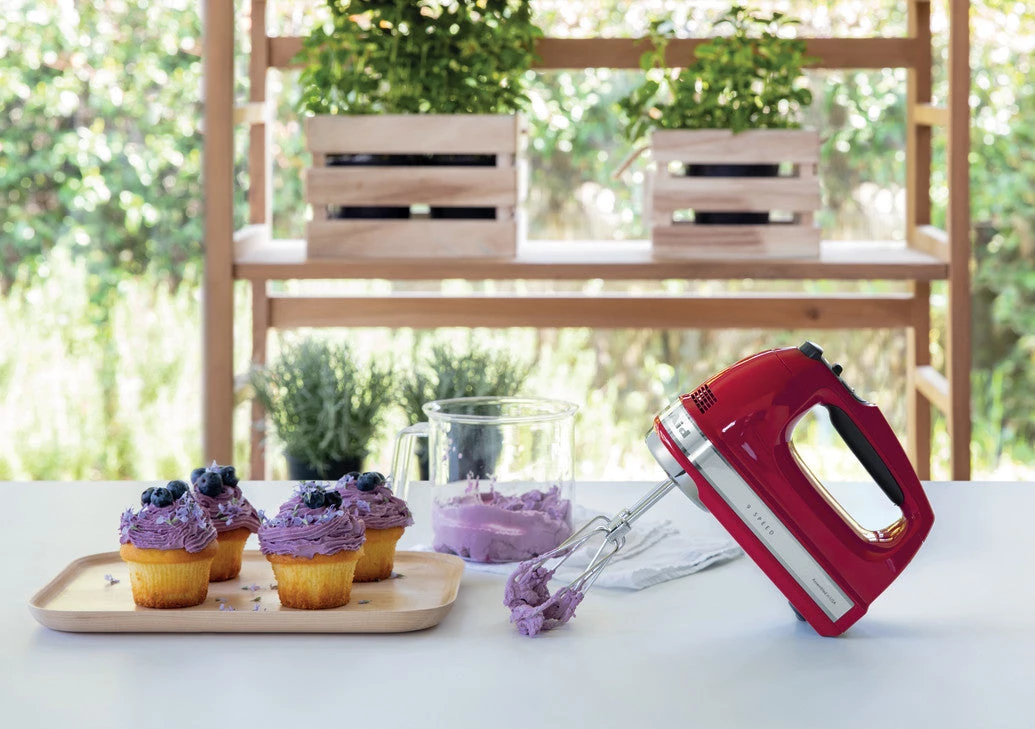 Higher speeds will stir heavy doughs and thick batters. Turn to top speeds for whips and perfectly stiff egg whites. The Digital Mixers & Attachments is the little brother of the classic KitchenAid Stand Mixer: particularly suited to busy cooks, or those with restricted counter top space. Rely on this smaller format to give big results, from delicious weekday dishes to elaborate weekend entertaining. You can look forward to robust KitchenAid quality, too. Made in the USA, a sturdy DC motor (85 watts) is combined with a digital LED display, for precision and power. A full range of supplied accessories means you can achieve any bakery or pastry recipe. Two stainless steel Turbo Beaters come as standard, great for heavy mixtures or larger quantities. Four further accessories include two dough hooks, a 16-wire whisk, mixing rod, and protective cotton storage bag. Choose from four classic colours: Empire Red, Onyx Black, Almond Cream or Contour Silver. At 1. 1 kilos and with a soft grip handle, the Mixers & Attachments is light and comfortable enough for one-handed mixing. A swivel cord provides extra flexibility, so you’re free to move as you mix. Add to your KitchenAid family or welcome an essential new member to your home, bringing creativity to all your cooking.