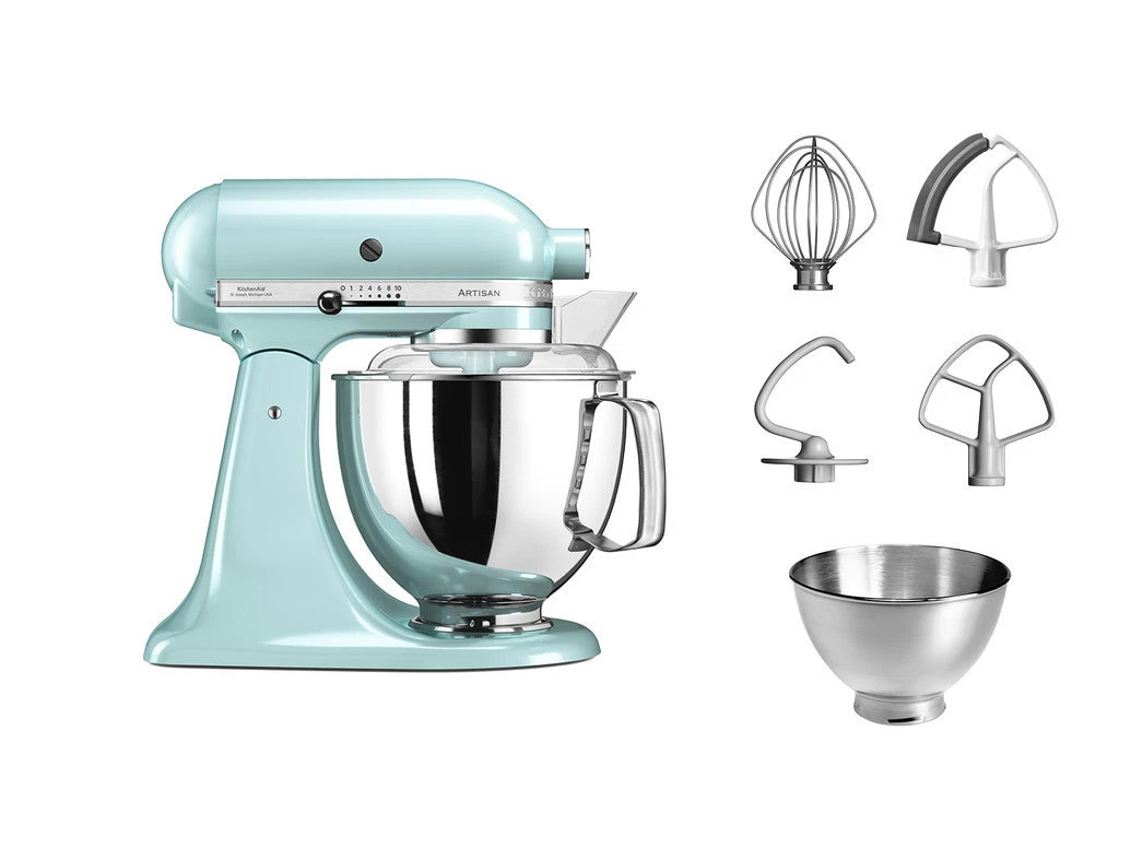 STANDARD ACCESSORIES: 4.8 L Bowl, 3 L Bowl, Pouring Shield, 6-Wire Whip, Flat Beater, Flex edge beater, Dough Hook