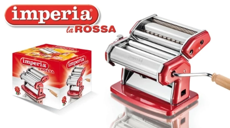 The Imperia “La Rossa” pasta machine is made in Italy in painted steel and with great craftsmanship to ensure its strength and durability. With Imperia and its “Duplex” cutter,