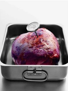 HEAVY RECTANGULAR ROASTING PAN FOLDING HANDLES STAINLESS STEEL.