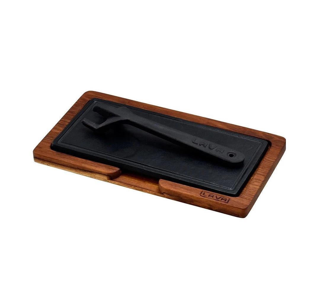Description: Wooden and Cast Iron Hot Plate Service Platter.
