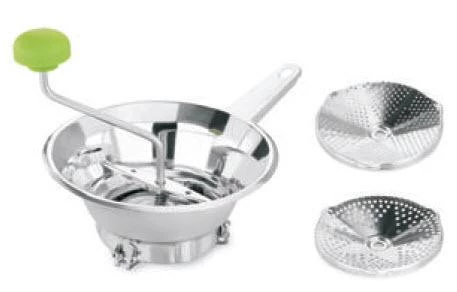 MM – Premium S/S VEGETABLE MILL WITH GREEN KNOB & 2 DISHES, DIM.: 24 CM.