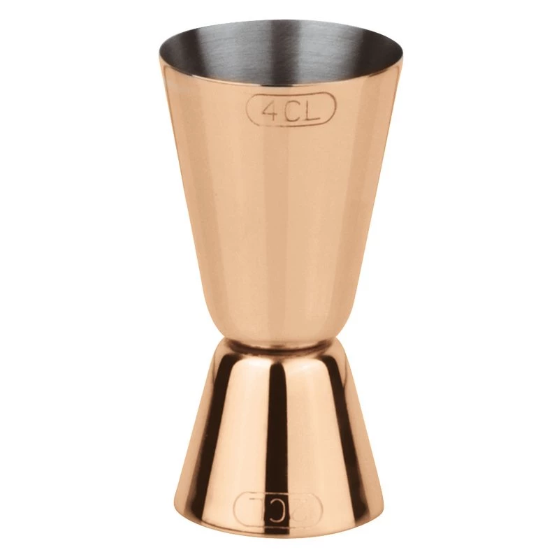 | 41604C00 | Cocktails, Stainless steel | Cocktail measuring cup double – ø 4,50 cm – h. 8,50 cm – 0,02 lt – lt 0,02 / 0,04 – Copper |