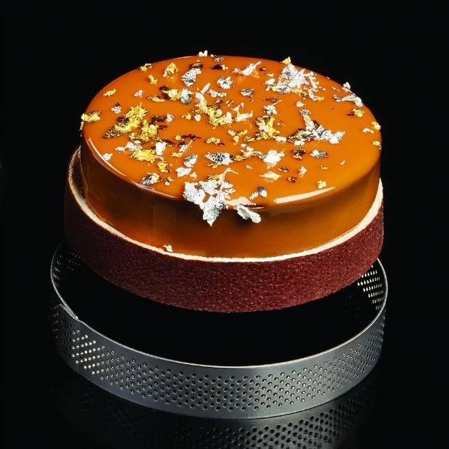 The concept starts with the creation of a mix of equipment to allow the chef to obtain tarts with perfect finishing; the key product of this system are the MONOPORTIONS micro perforated stainless steel frames: the micro holes let the shortcrust pastry to hang onto the frame, avoiding the border collapsing during baking and a perfect browning of the basis.