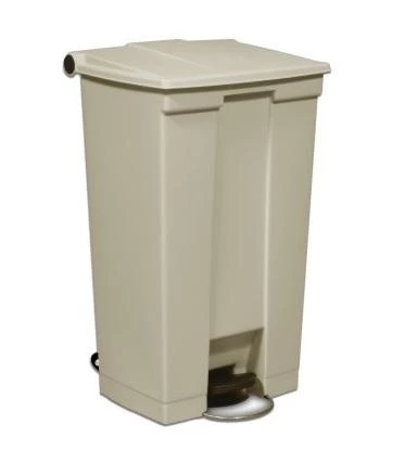 Mobile Step-On Container For hands-free sanitary waste management.Assists in complying with OSHA regulation; 29 CFR 1910.1030 “Occupational Exposure to Bloodborne Pathogens.” Factory Mutual (FM) approved Tight-fitting, overlapping lid to help contain odors. Quiet, heavy-duty pedal for hands-free sanitary use. Tough, puncture-resistant, all-plastic construction. Optional rigid liners for 6143, 6144, 6145, 6146 containers provide a leak-proof base to help contain liquids. Length: 50.2 cm Width: 41.0 cm Height: 82.6 cm Volume Capacity [Nom,: 87.1 L Colour: Beige