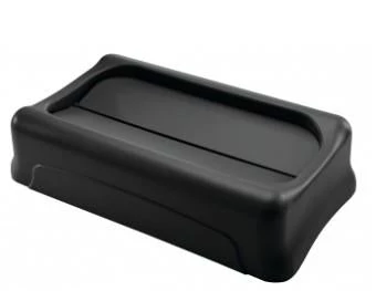 The Rubbermaid Commercial Slim Jim™? Swing Lid promotes recycling and improves productivity. The swing lid provides easy access for trash disposal and then swings back to hide trash from public view. Lids encourage waste separation and recycling with interchangeable, color-coded tops. The heavy-duty sturdy plastic is rust-proof and easy to clean.