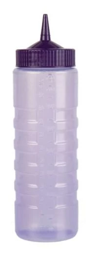 “COLOR MATE SQUEEZE BOTTLE DISPENSER, 24oz, WIDE MOUTH, STANDARD CAP, MOULDED IN OUNCE MARKING, POLYETHYLENE, PURPLE BOTTLE”