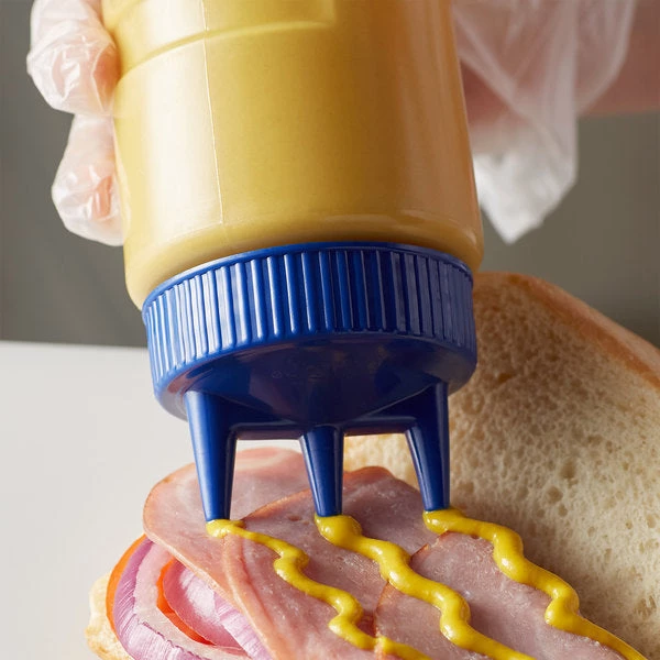 Provide your customers with their favorite condiments with this Vollrath 3332-1344 Traex® Color-Mateâ„¢ 32 oz. clear Tri Tipâ„¢ wide mouth squeeze bottle with blue cap. With this bottle, you’ll be able to provide easy, mess-free service, every time! At the same time, the durable, yet flexible polyethylene bottle is easy to squeeze for fast application of ketchup, mustard, signature sauces, dressings, or any of your favorite condiments. Pair this bottle with other clear bottles with different colored caps in the line creating a color-coded system in your busy kitchen, while being able to easily identify which products are in your bottles at a glance. The clear color makes it great for dispensing oils and light colored condiments with a neutral color, while the Tri Tipâ„¢ design saves time in high-volume areas, and allows you to quickly disperse condiments and dressing on sandwiches and salads with consistency. Cut the tips to dispense more viscous sauces, or leave as is for thin liquids. The translucent bottle allows you to easily identify the contents and track fill levels and thanks to the clearly embossed capacity graduations, your staff can easily measure out condiments to help monitor portion control. Additionally, the ridged style of the bottle helps to improve your grip for efficiency.