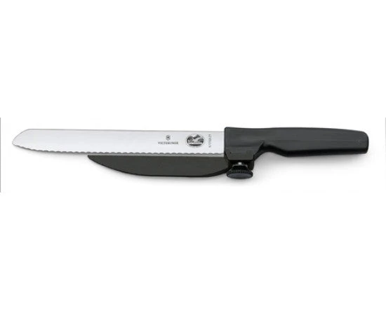 plastic handle and serrated blade. For righthanded