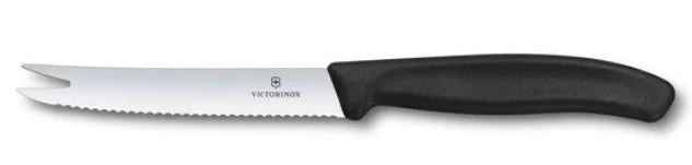 Victorinox Kitchenware Swiss Classic Cheese & Sausage Knife With Fork Tip, 11 Cm, Color: Black.