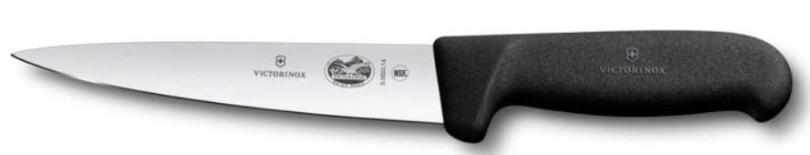 “VICTORINOX STICKING KNIFE, POINTED TIP, 14 CM, BLACK FIBROX”