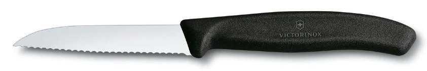 Victorinox SwissClassic PARING KNIFE, WAVY, 8CM. BLACK. COUNTRY OF ORIGIN: SWITZERLAND. Kitchenware